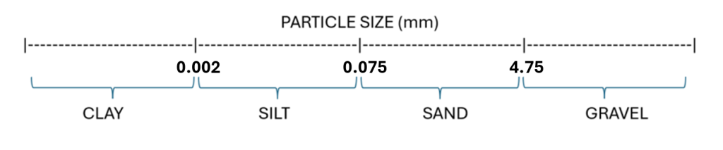 - Silt and Clay, which are further distinguished by plasticity tests (e.g., Atterberg limits).